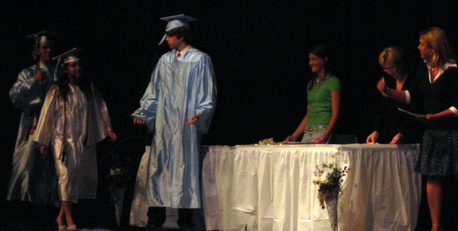 We opened Friday. Had an awesome crowd, had fantastic performances, and a power failure. Passing severe thunderstorms knocked out power to the theater about 10 minutes into Act 2. We waited for generators to kick in, or power to return, but after a few minutes something needed to be done.