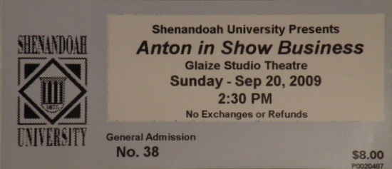 Sunday we went to see Anton in Show Business at Shenandoah. Corinne was the enthusiastic Texan ingenue Lisabette, flanked by her roommate Shannon as Cassey. In five words, it was funny, funny, funny, funny, tragic. With an emphasis on funny. With a tinge of tear-jerking tragic at the end. DEFINITELY a must-see, but if you didn't see it, it's too late, it only ran three shows. You would think I should have some pictures of the show, or if taking pictures during the show was a problem, maybe pictures of the cast after the show. Or pictures of the whole group of us going out to dinner afterward. Apparently no, I was just in it for my own selfish entertainment.